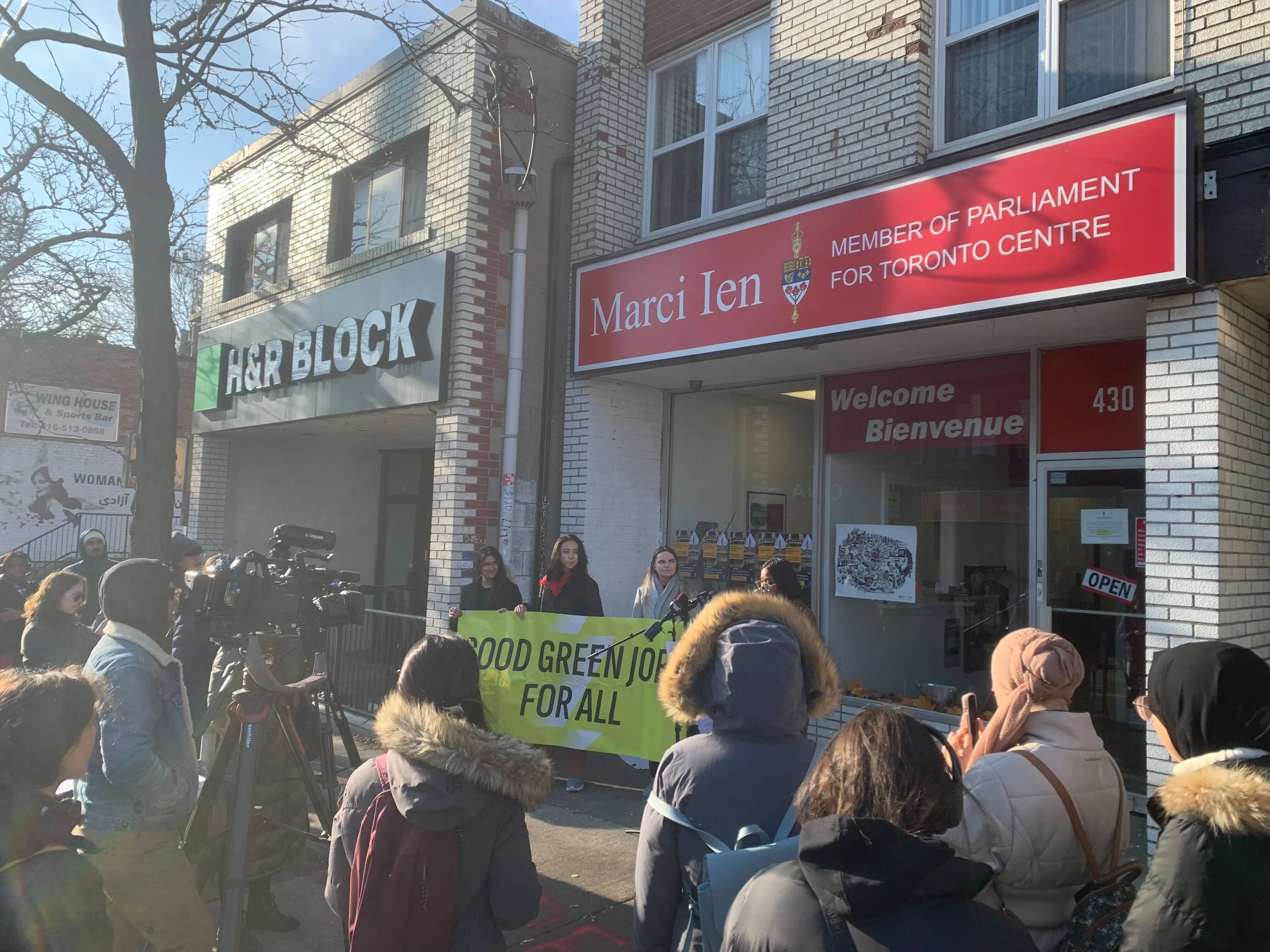 Toronto, ON – As the global climate COP28 meetings begin in Dubai, young people are mobilizing for climate action here at home. This morning, youth gathered outside the constituency office of federal Minister for Youth Marci Ien to hand-deliver over 600 mock cover letters for a Youth Climate Corps (YCC). The letters capture the aspirations of young people from across the country seeking meaningful work confronting the climate crisis. These youth seek to serve in an exciting government-funded green jobs program.