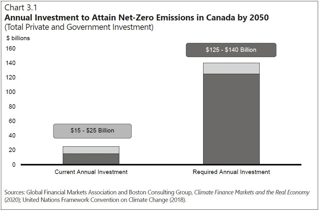 In this illuminating chart contained in Budget 2022, the finance ministry shared the gap between current and needed annual spending (or “investment”) to attain “net-zero emissions in Canada.” The lighter bars show government spending, while the darker ones show private spending, both current and aspirational. What is clear is that the government does not intend to spend what it takes to confront the climate crisis; rather, it hopes to leverage and entice the private sector to do so. The Liberals seek to incentivize our way to victory. Both the ERP and the budget explicitly make clear that the federal government’s flagship climate policy remains the escalating carbon price, a market signal it hopes will cajole private investment in the right direction. This is an approach that will see us fry. It is no way to prosecute a battle for our lives.