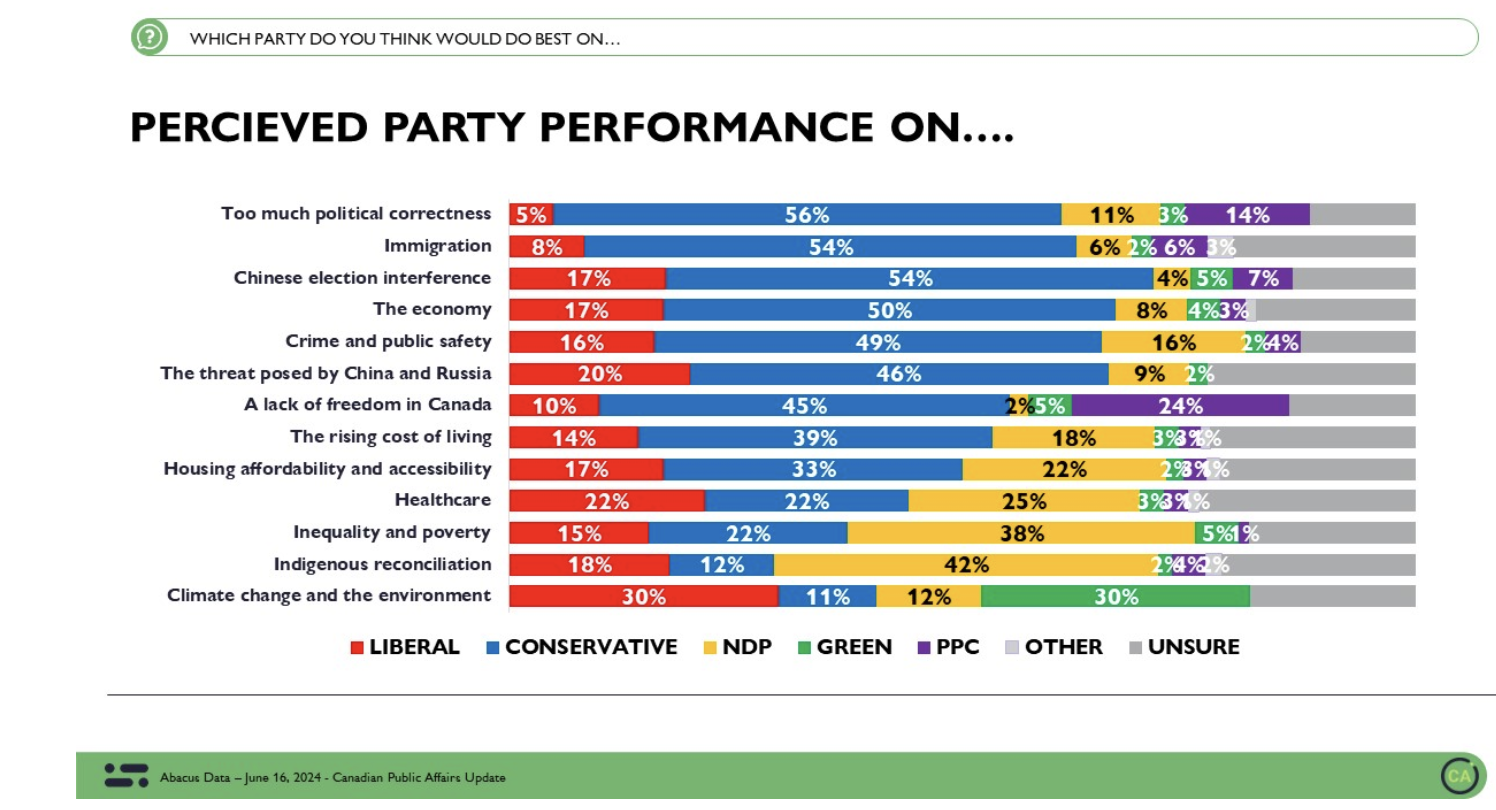 If the path to great leadership can be found in capitalizing upon one’s strengths, then the Liberals should lean in on climate. It is the only domain in which they strongly outperform the Conservatives and NDP.