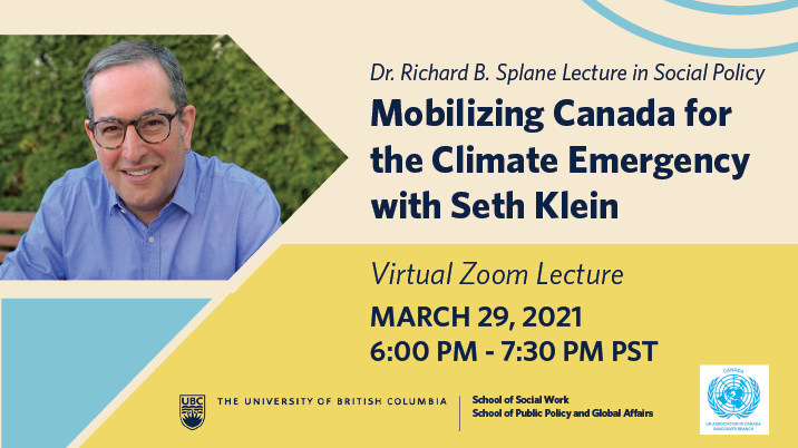 Join us for a discussion on mobilizing Canada for the climate emergency with Seth Klein, founding British Columbia Director of the Canadian Centre for Policy Alternatives, as part of the annual Richard B. Splane Lecture in Social Policy.
